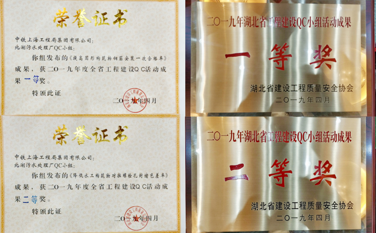 武漢北湖污水廠項目喜獲2019年湖北省 工程建設QC活動一、二等獎